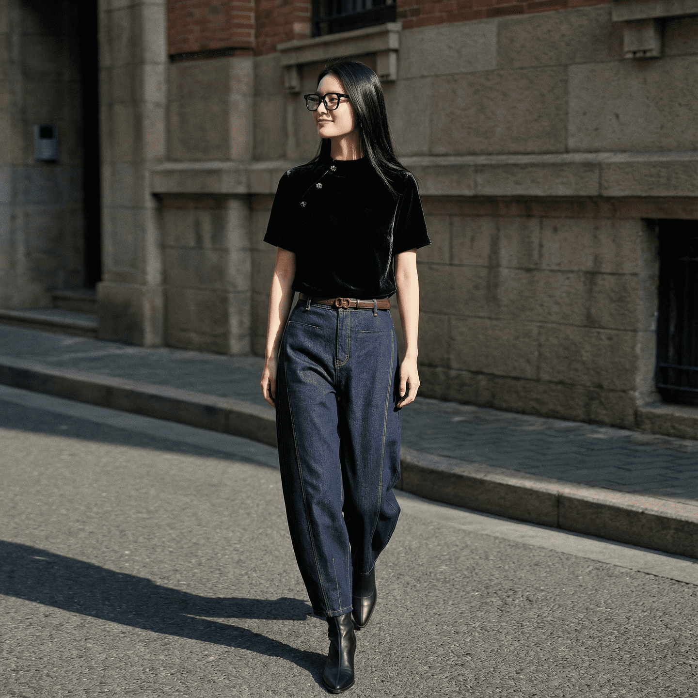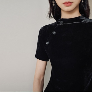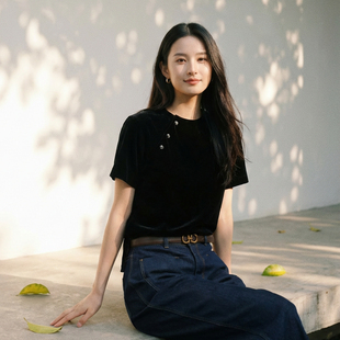 商场同款 上衣 5401A 质感桑蚕丝丝绒斜襟盘扣短袖 EP雅莹女装
