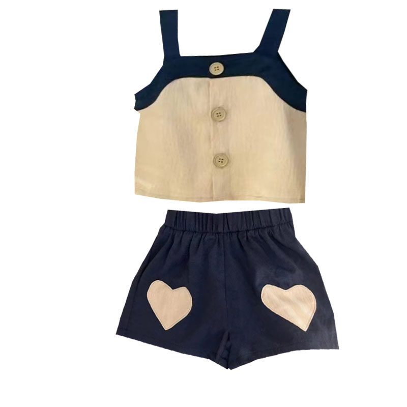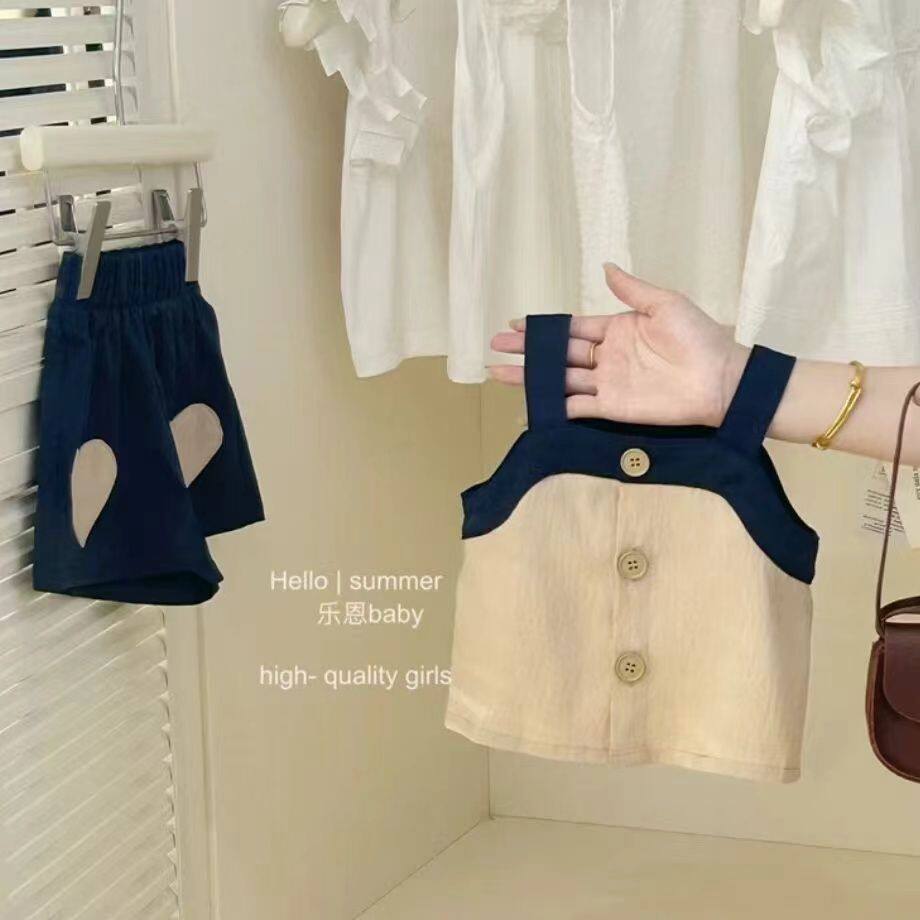 2026新款 儿童女宝宝气质时尚 夏季 吊带心形短裤 两件套 韩版 女童套装