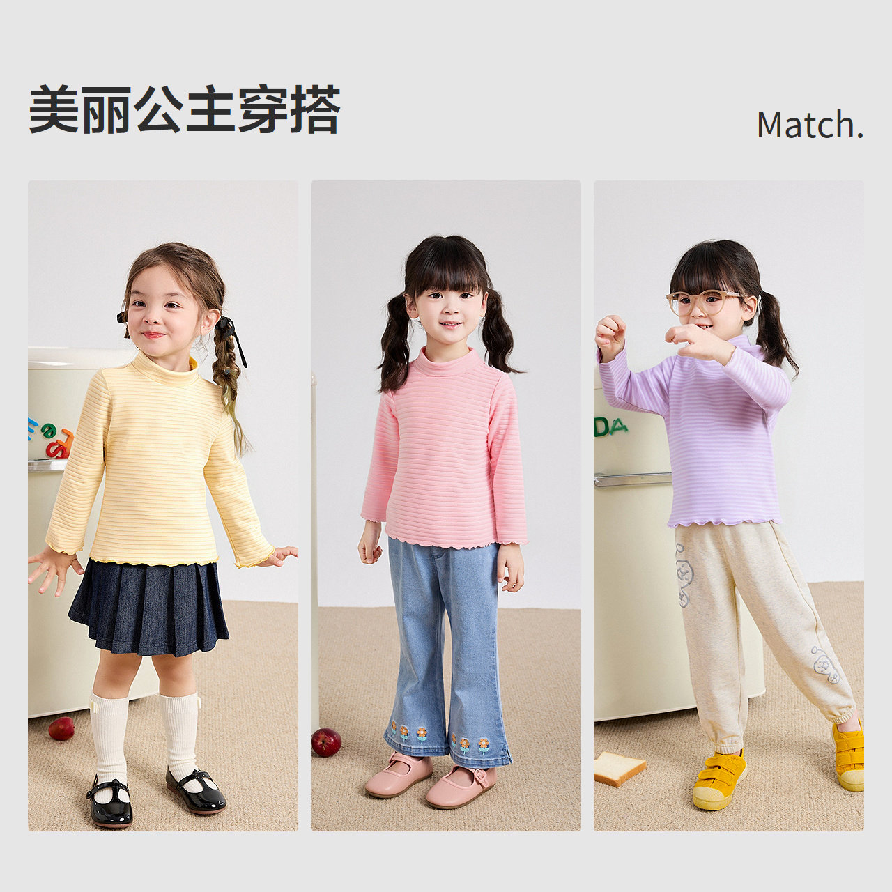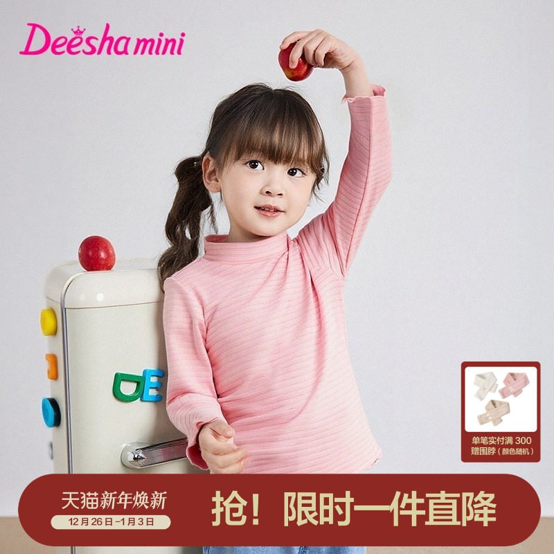 新款 t恤冬季 宝宝儿童半高领条纹打底衣 女童长袖 笛莎官方旗舰童装