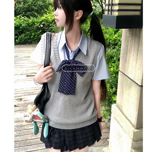 校供感日系jk制服针织马甲背心毛衣夏季 学院风海苔格裙短裙套装
