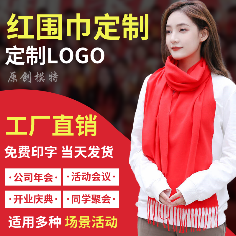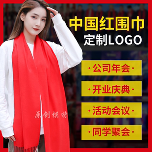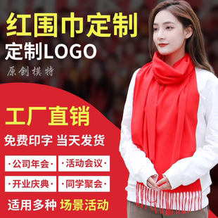 红围巾定制中国红围脖刺绣印字logo红色围巾开业会议聚会大红年会
