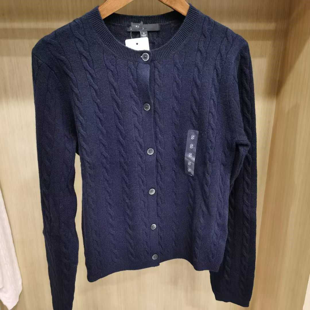 471612 日单女装 毛衣外套 纯色长袖 481477 纽花圆领舒适针织开衫
