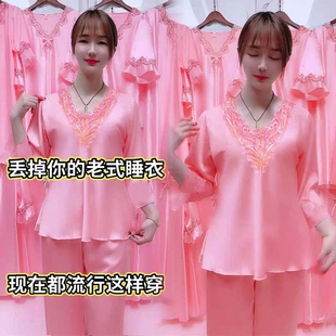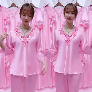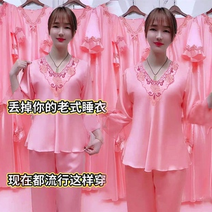 长裤 长袖 冰丝睡衣女夏季 短袖 大码 家居服女套装 丝绸睡衣女夏天薄款