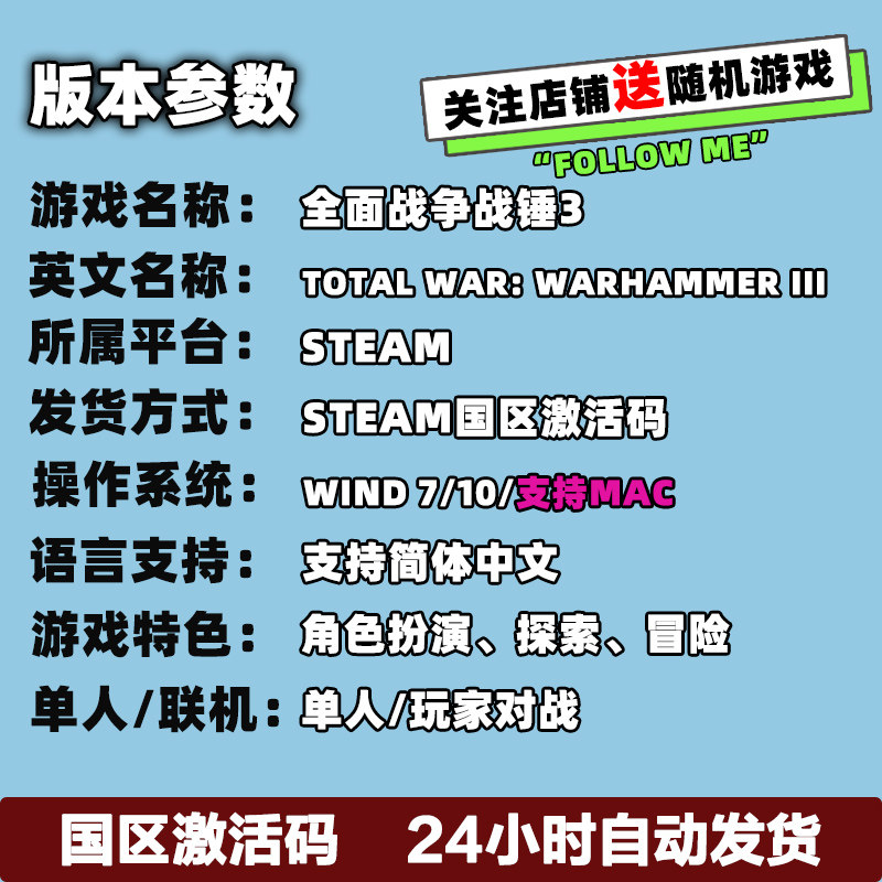 Total War WARHAMMER 中文正版 激活码 全面战争战锤3 III Steam
