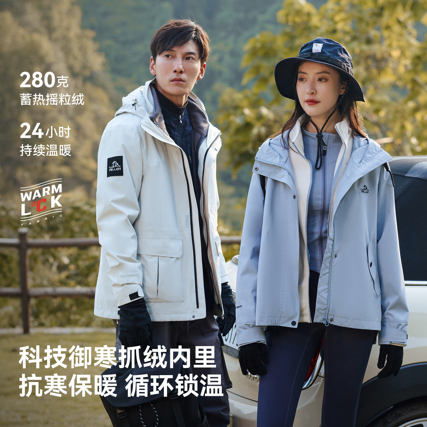 探觅冲锋衣男女三合一可拆卸防风防水户外登山服新款 加绒加厚外套