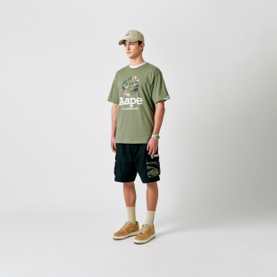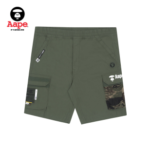 6844XXI 迷彩拼接潮流短裤 Aape旗舰店男装 春夏潮流猿人徽章工装