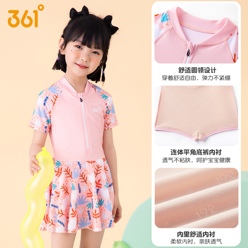 361度儿童泳衣女童中大童连体宝宝可爱公主裙泡温泉泳衣