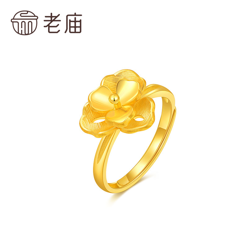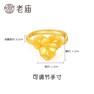 老庙黄金花朵足金戒指可调节手饰官方旗舰店正品 礼物计价情侣送礼