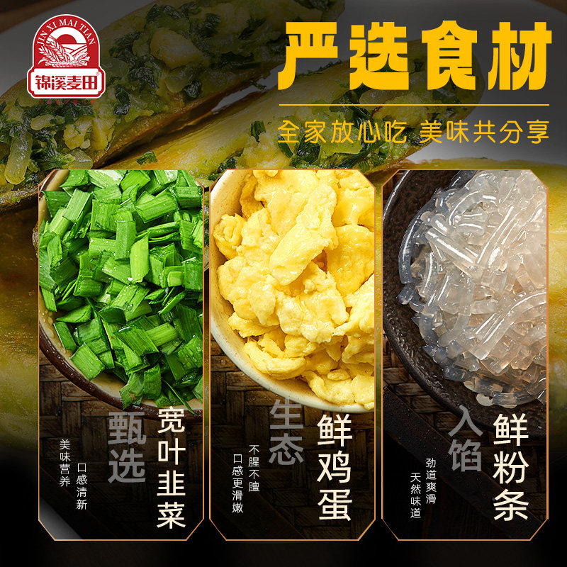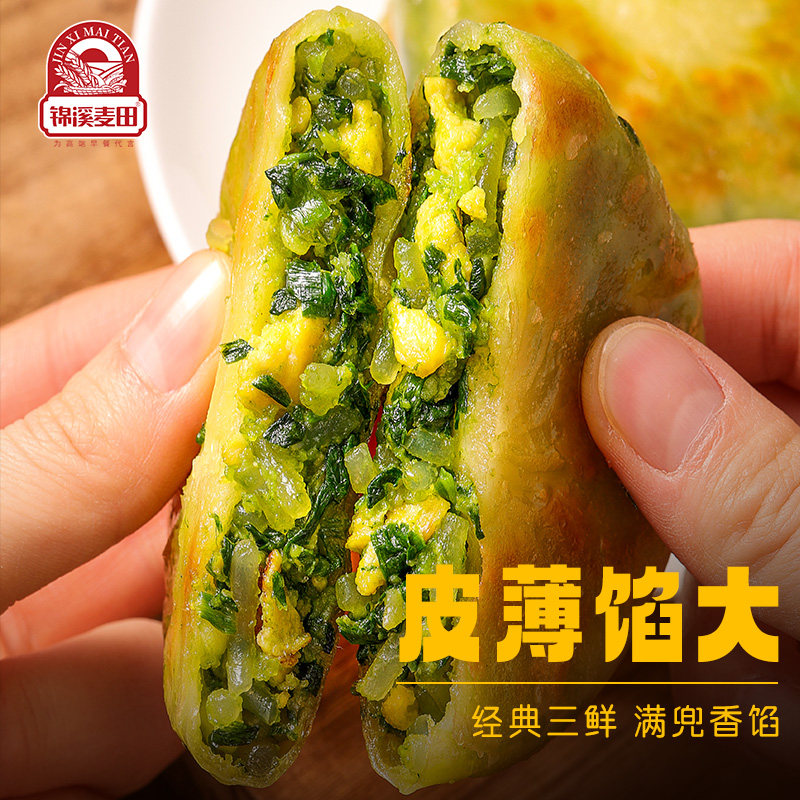锦溪麦田韭菜鸡蛋馅饼纸皮薄皮速冻儿童早餐半成品盒子 新品