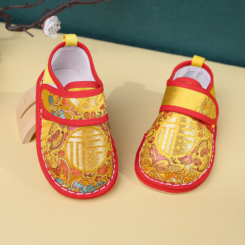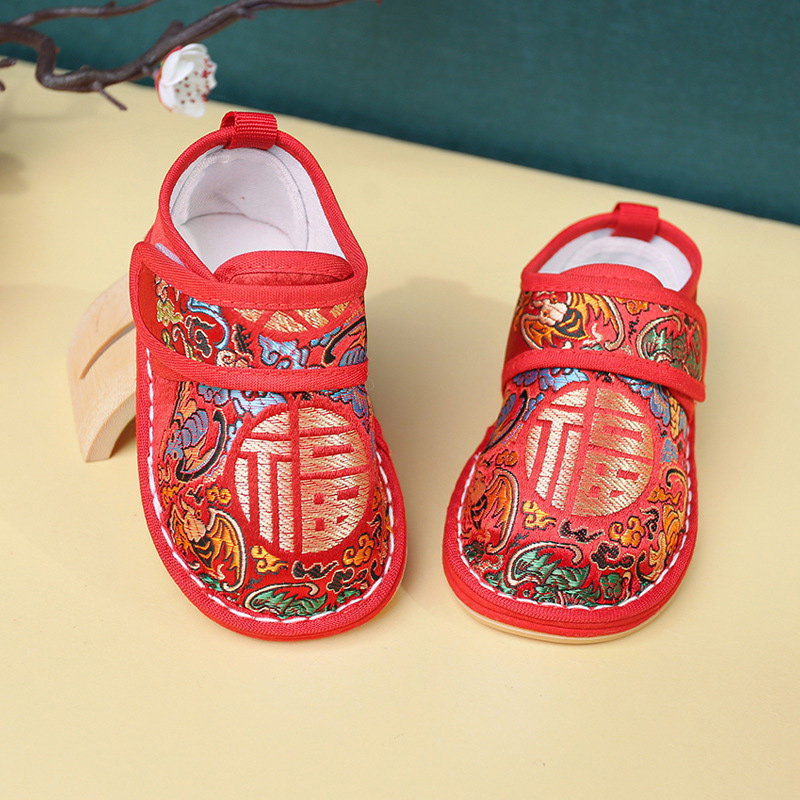 中国风女宝宝大包学步鞋 鞋 子五福临门男宝宝全胶底福字千层底布鞋