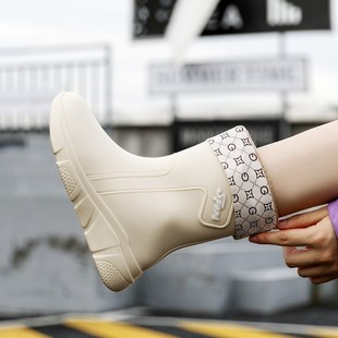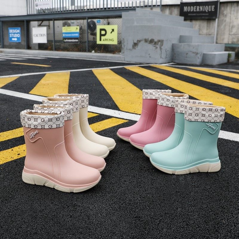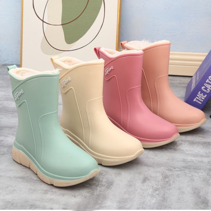 加厚 加绒一体保暖中筒雨靴外穿厨房洗车防滑防水胶鞋 雨鞋 女秋冬款