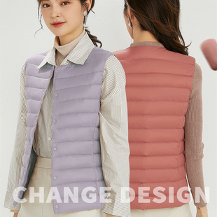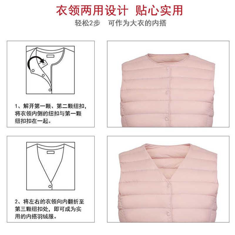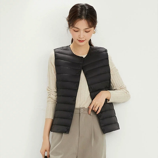 鸭绒马夹背心外套L V领韩版 鸭鸭轻薄羽绒服马甲女小个子冬反季 短款
