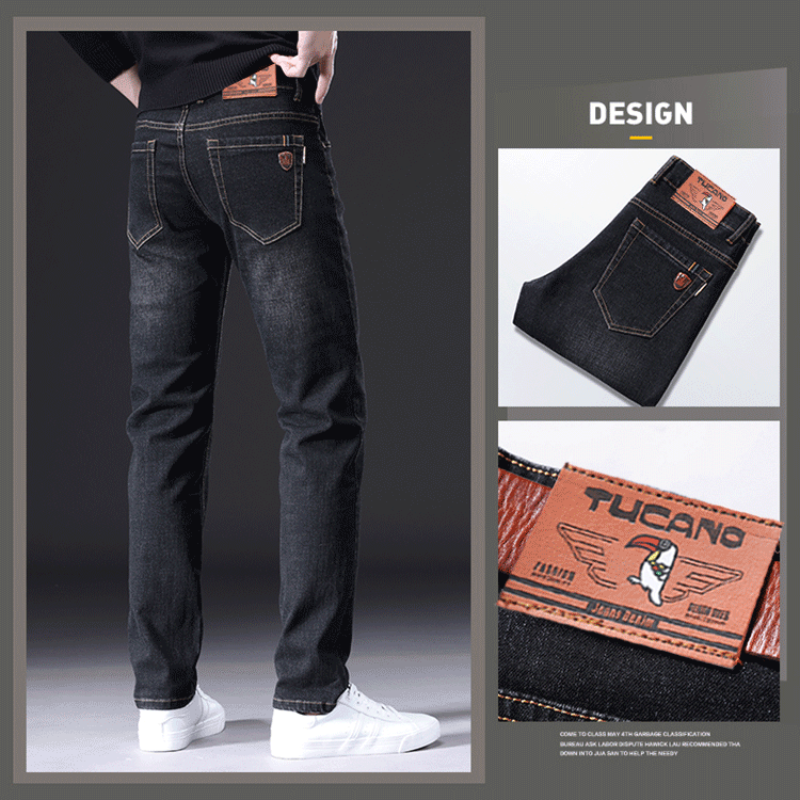 超厚保暖宽松直筒弹力抗寒休闲长裤 冬季 男士 啄木鸟加绒加厚牛仔裤