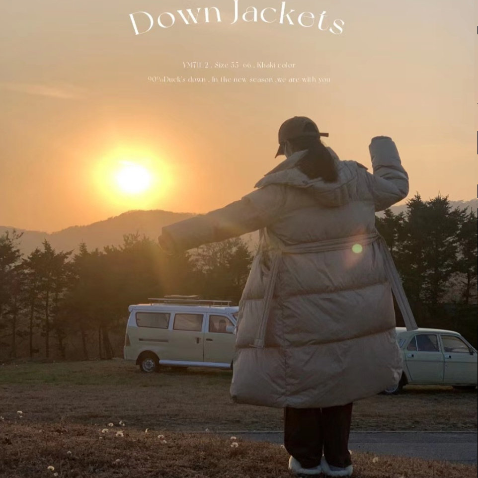 特价 711 羽绒服 90%鸭绒连帽暗扣系腰绳300g充绒 韩国长款