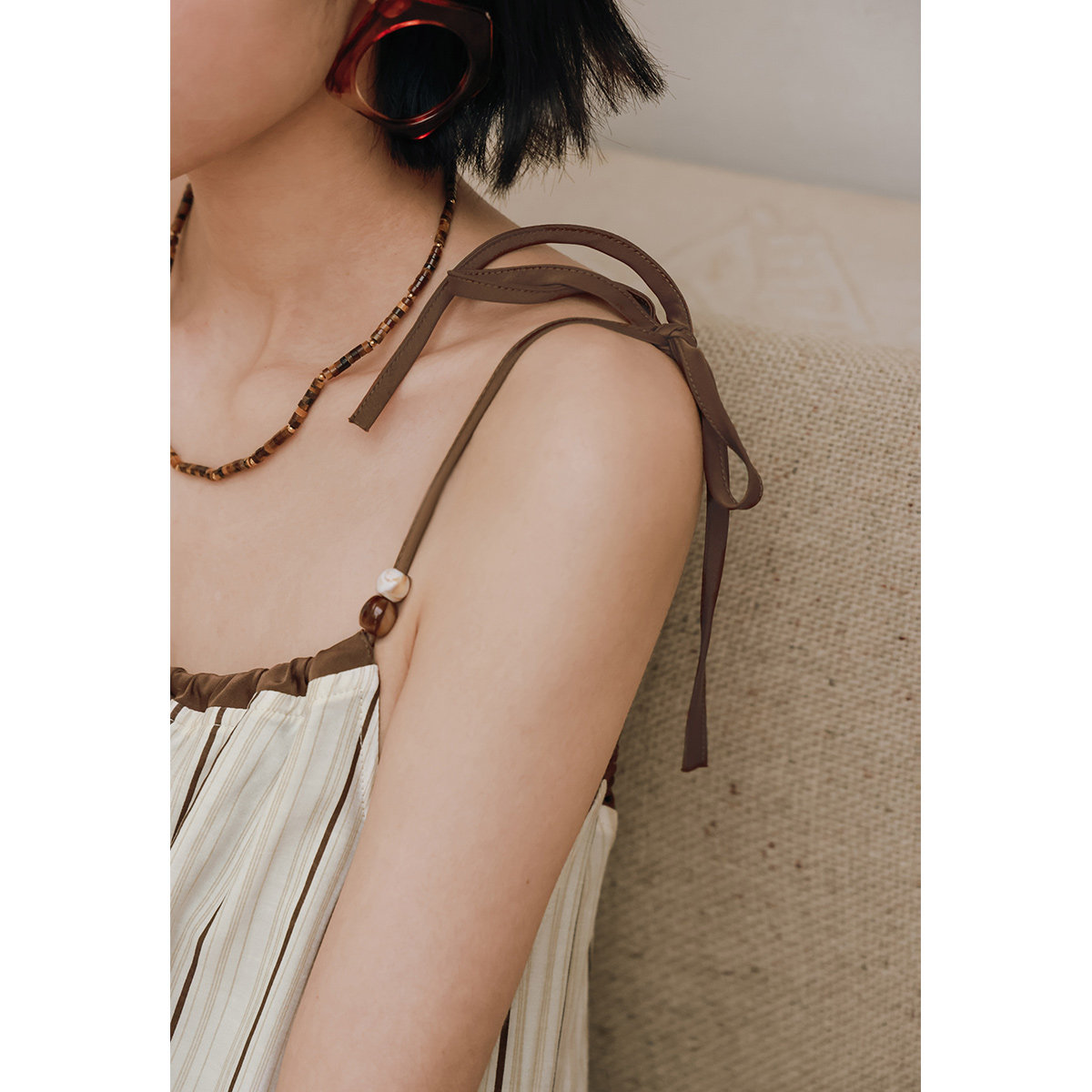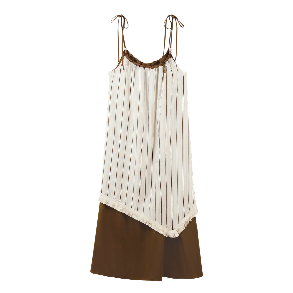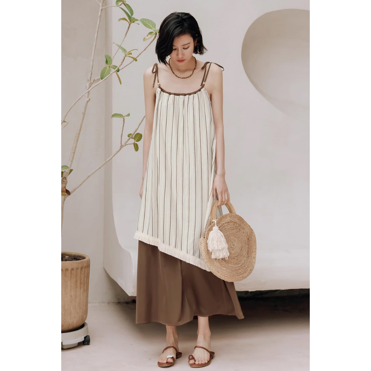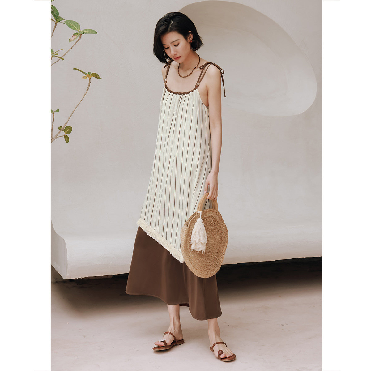 弥古波西米亚吊带连衣裙不规则拼接条纹流苏裙女夏海边度假沙滩裙