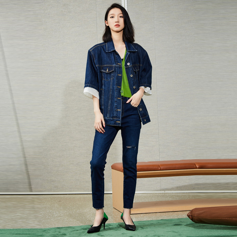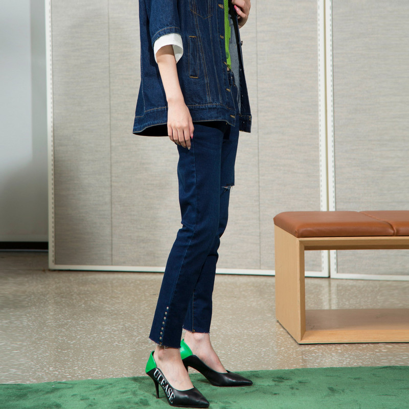 9052 新疆棉高士线YKK铆钉折边四面弹九分直筒裤 27W高端加绒