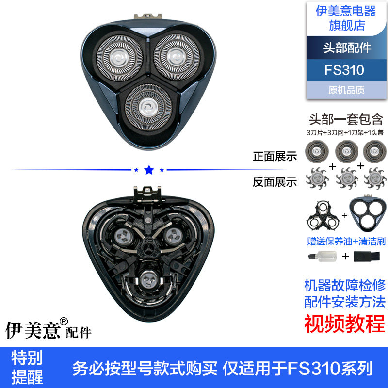 适用飞科剃须刀FS310刀头配件头部头盖刀架中座驱动轴鬓刀充电器