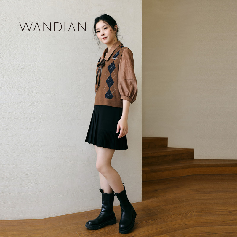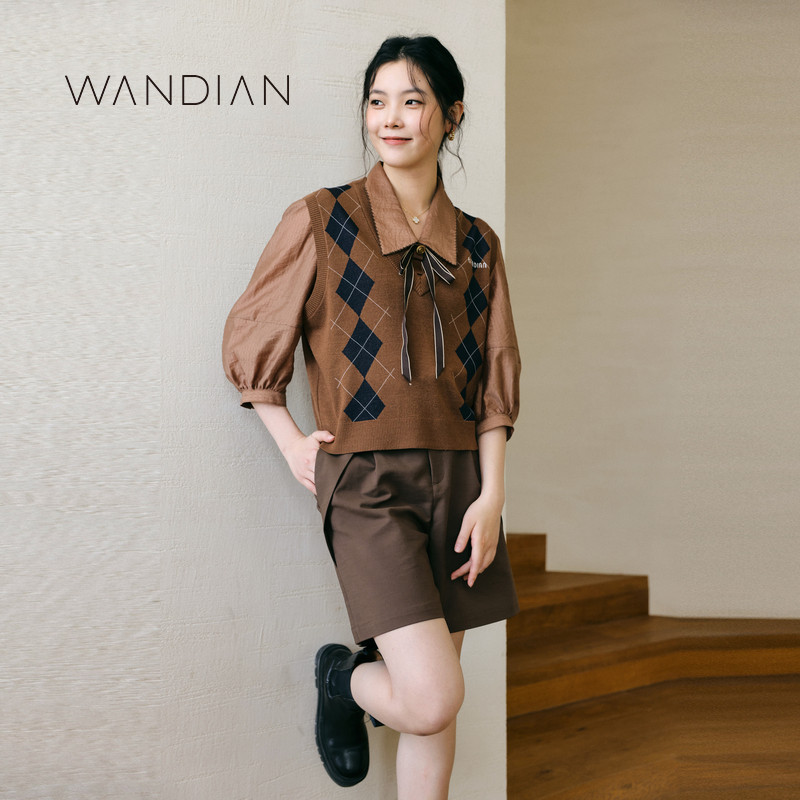 婉甸秋季 1233W13RS2 日常上班沙褐色毛织背心上装