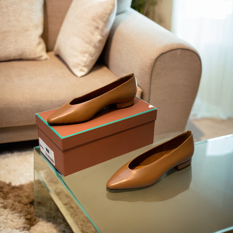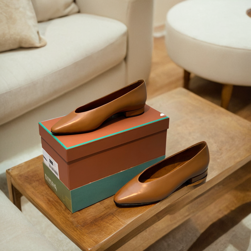 软皮百搭工作小跟瓢鞋 女浅口尖头奶奶鞋 真皮平底单鞋 莞产2024新款