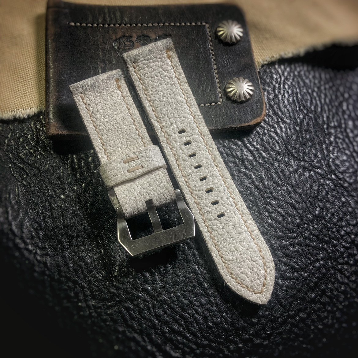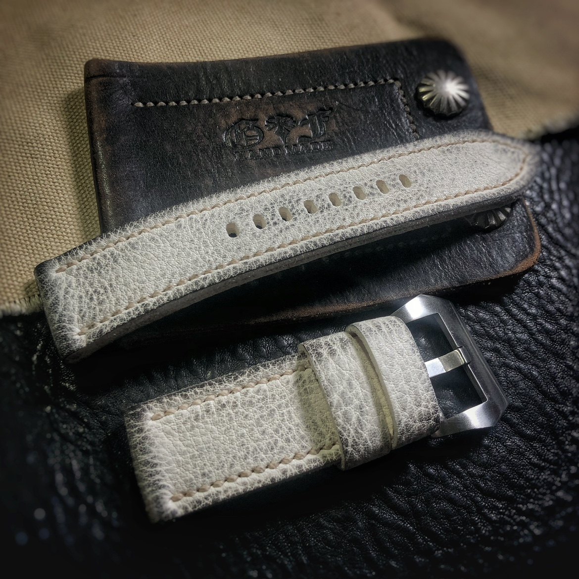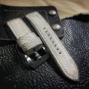 GF手工定制白色复古做旧头层牛皮粗狂适用于沛纳海26 加长等 312