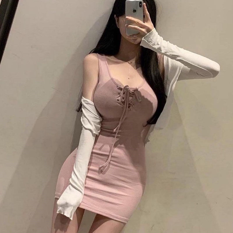 纯欲风吊带连衣裙女夏季 设计感性感显身材绑带收腰包臀短裙子 韩版