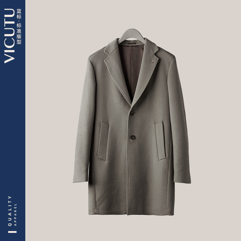 西装 过膝双面羊绒外套 领毛呢子风衣 中长款 纯羊毛双面呢大衣男士
