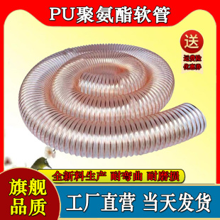 PU聚氨酯软管镀铜钢丝风管透明木工木屑吸尘管波纹伸缩通风管软管
