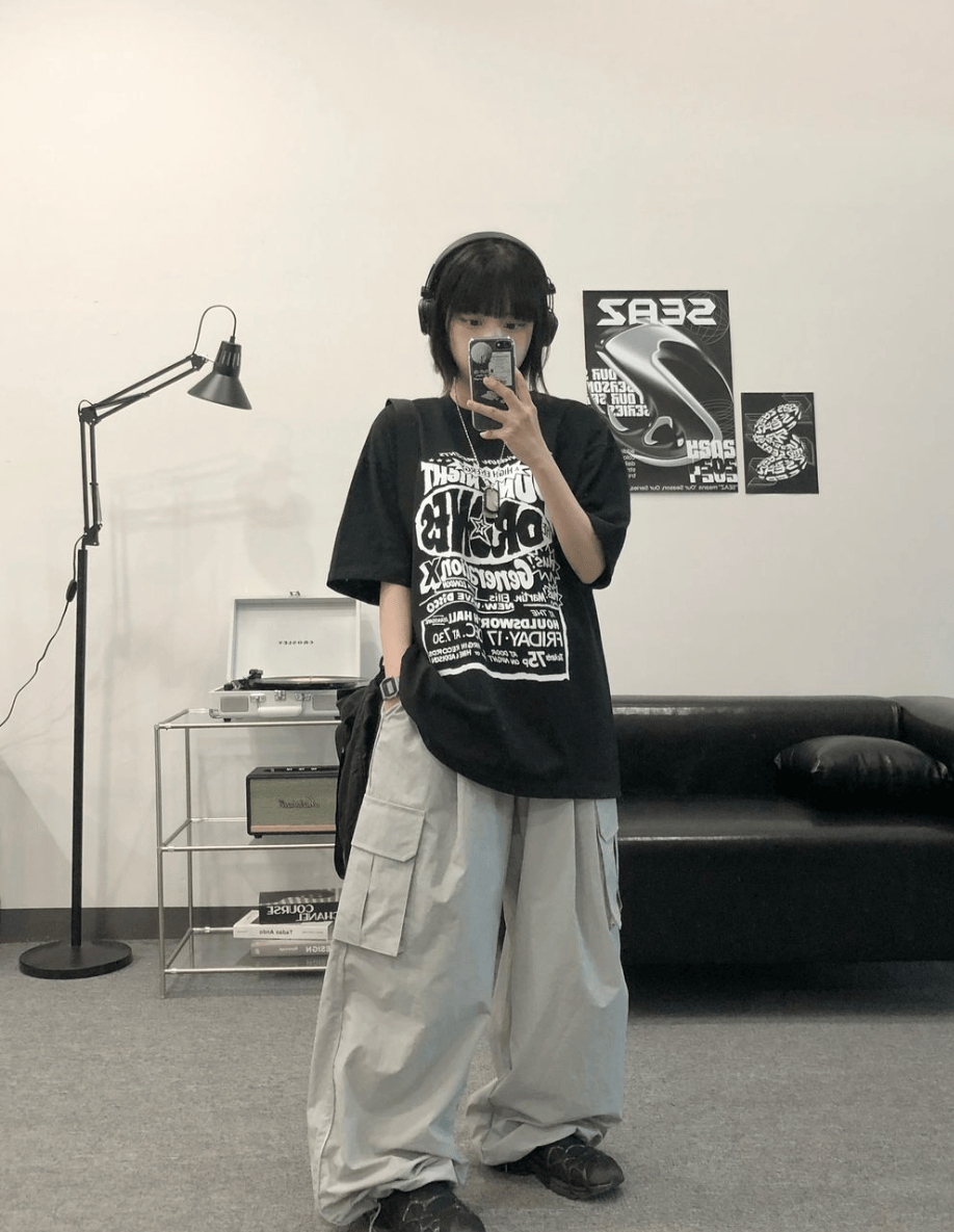 潮 宽松字母印花上衣ins短袖 24SS韩国美式 复古纯棉T恤女2024春夏季
