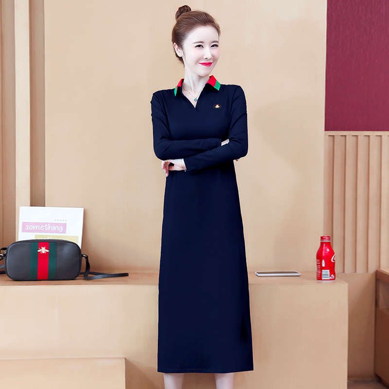 过膝休闲中长款 显瘦长袖 卫衣裙t恤女 polo连衣裙女直筒大码 春秋款