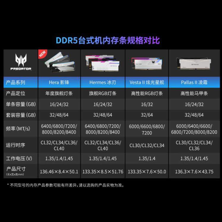 24G 6000 6800 C28AMD冰刃影峰 宏碁掠夺者DDR5内存 8000 16G