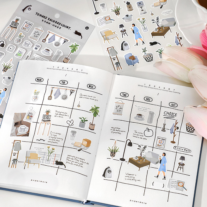 生活晴朗手账本咕卡贴纸装 饰家居食物手账素材可爱日记手帐贴画
