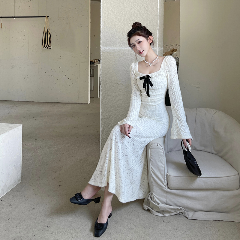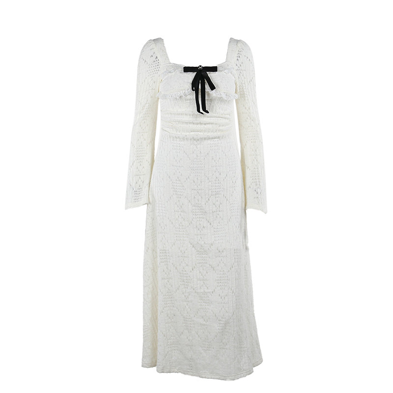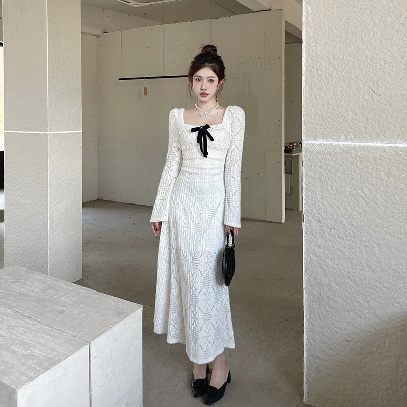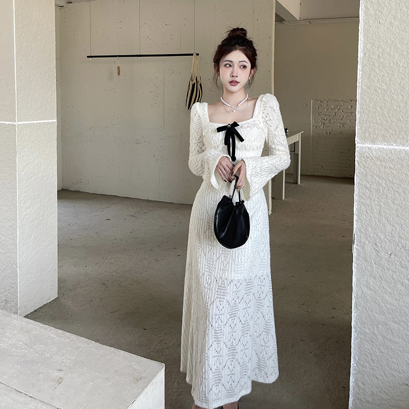 连衣裙女秋季 高级蕾丝白色长袖 生日裙子气质长裙 法式 GirlsAt18