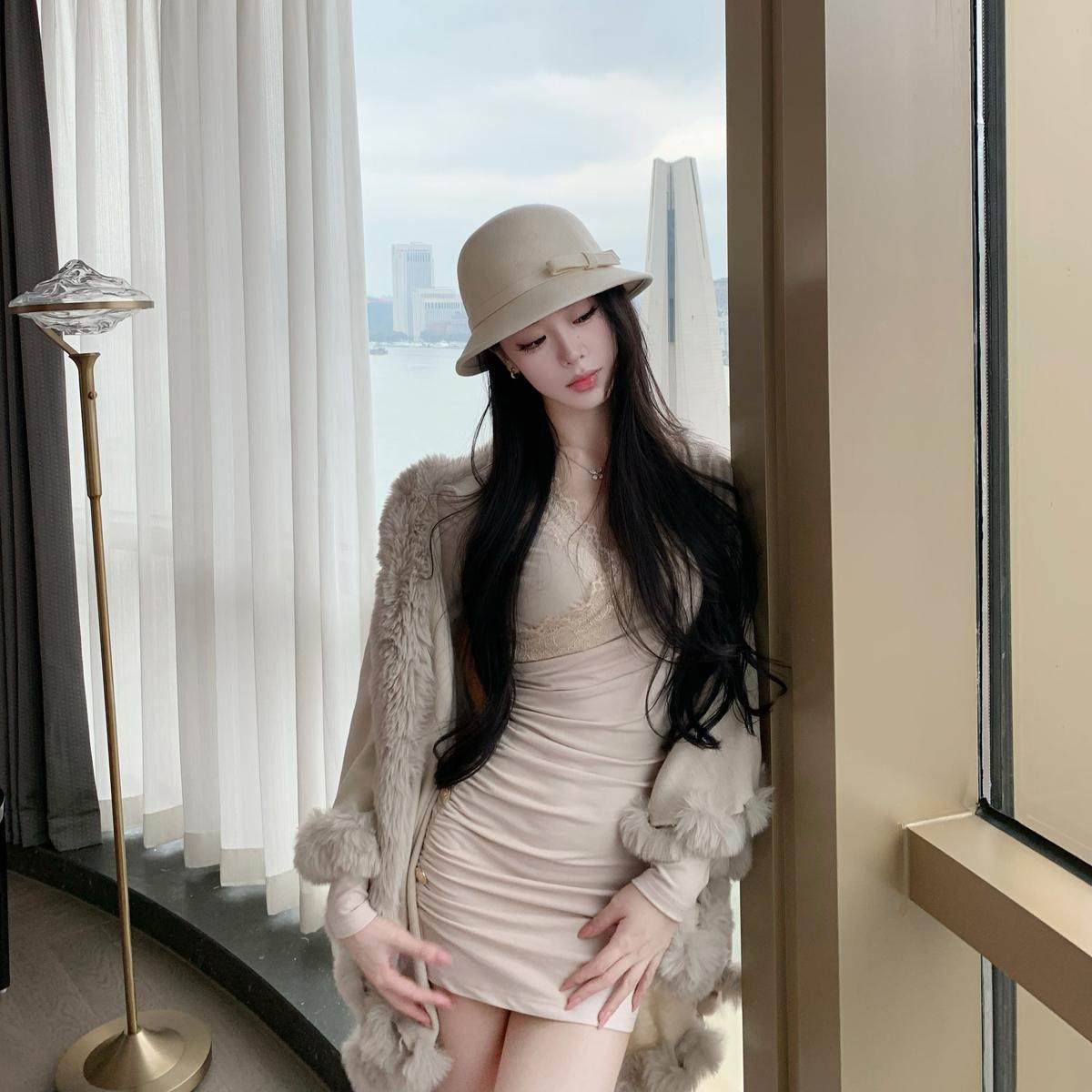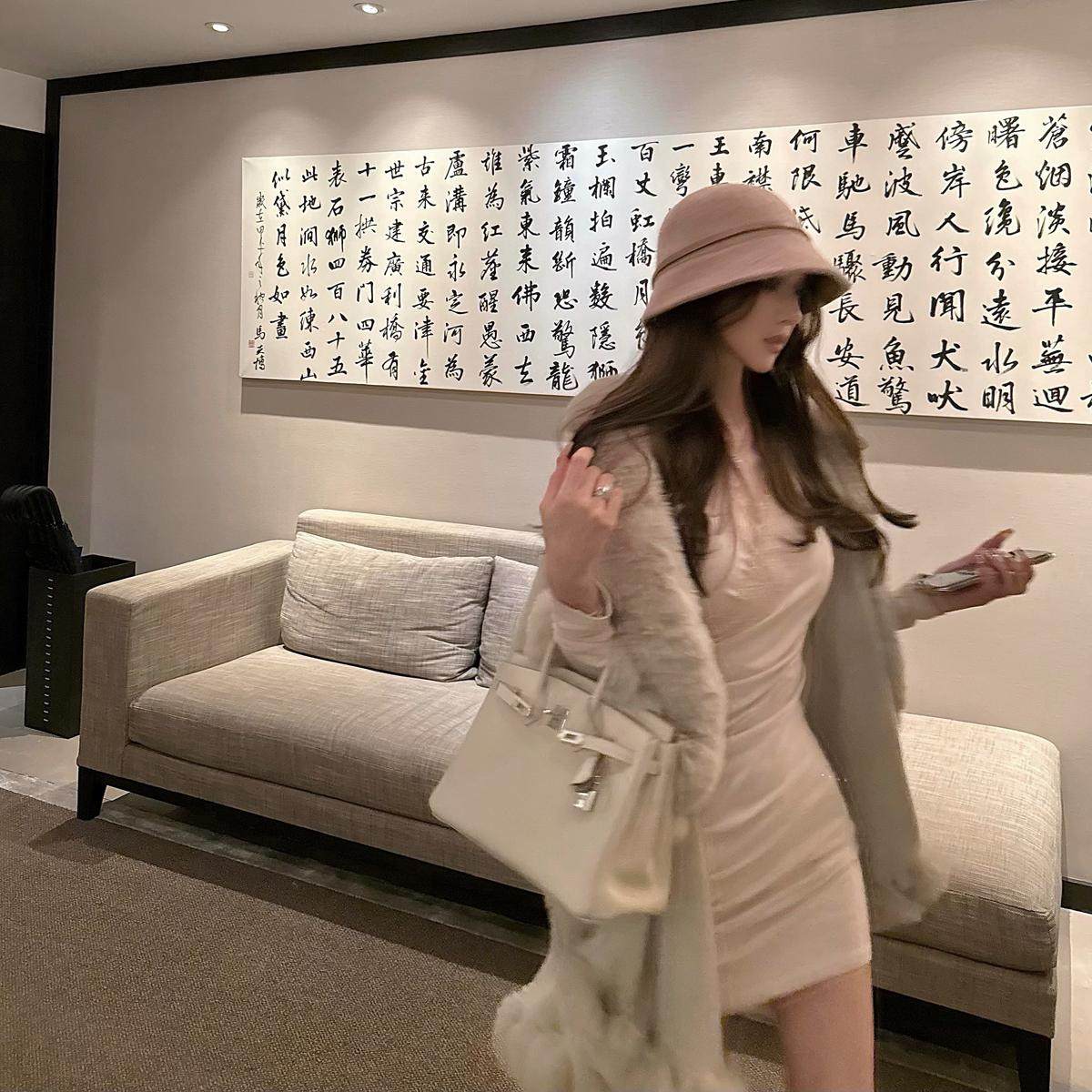 杜总家 原创温婉可人V领褶皱显瘦秋冬百搭女气质连衣裙 高知lady