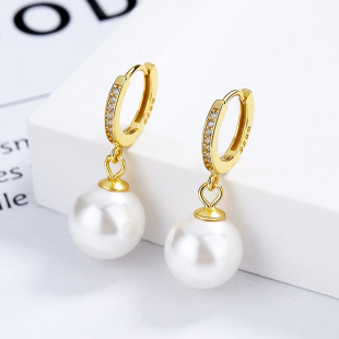 珍珠耳环2026新款 简约百搭耳饰女S925纯银耳扣防过敏耳钩贝珠耳坠