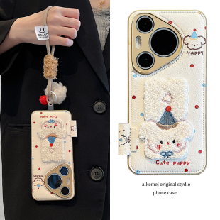 秋冬波点立体刺绣小狗大象Pura80Ultra毛球挂绳气垫皮纹mate60pro男女款 适用华为pura70pro 手机壳mate70pro
