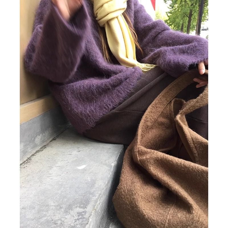 针织打底衫 品牌高级感羊毛衫 女半高领宽松毛衣秋冬加厚羊绒长袖