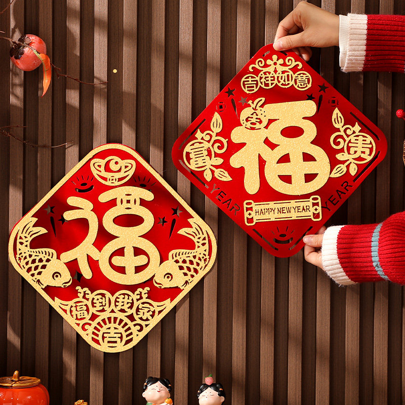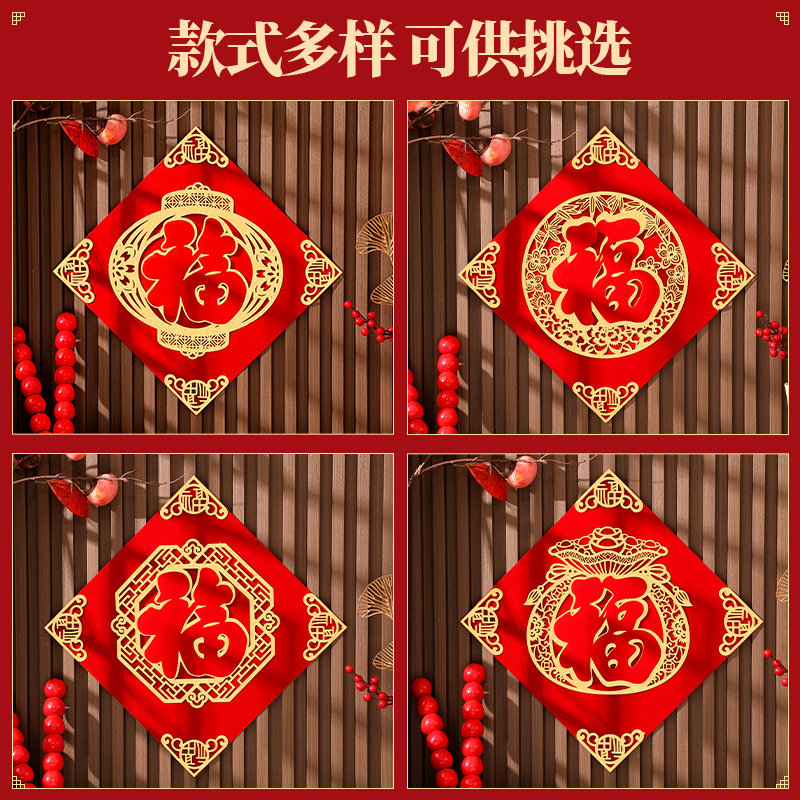 植绒面窗贴特大号福字门贴窗花剪纸静电贴纸玻璃贴过新年乔迁装 饰