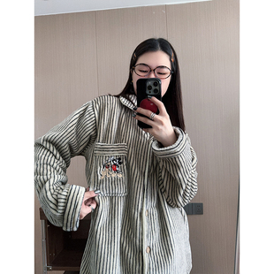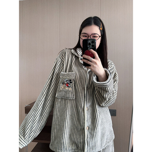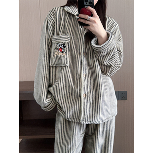 粉色保暖条纹可外穿家居服 2025新款 形内睡衣女加绒半边绒套装 冬季