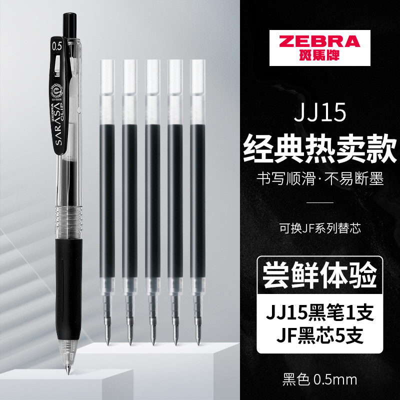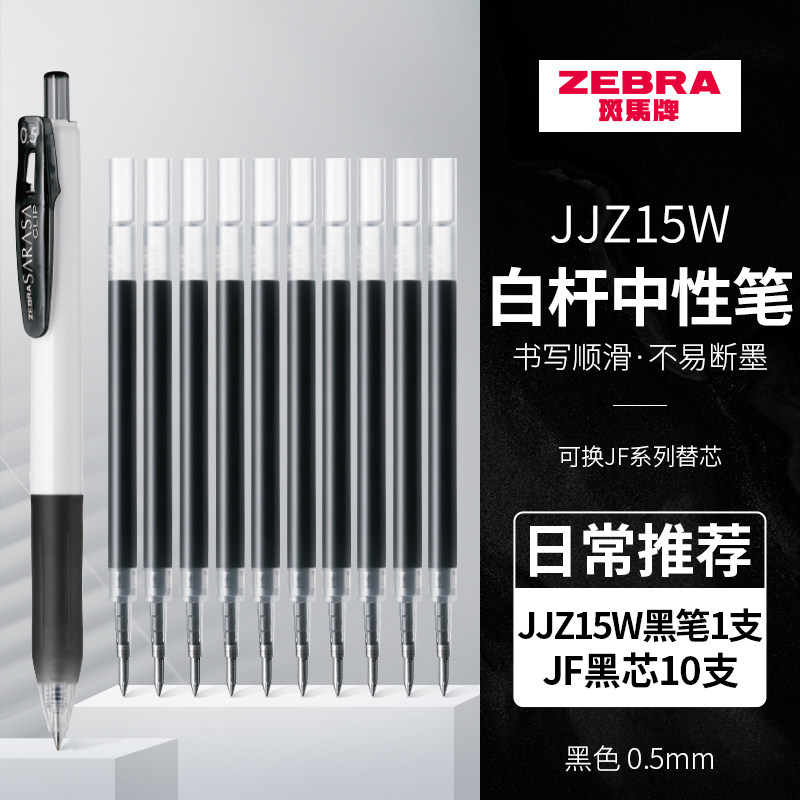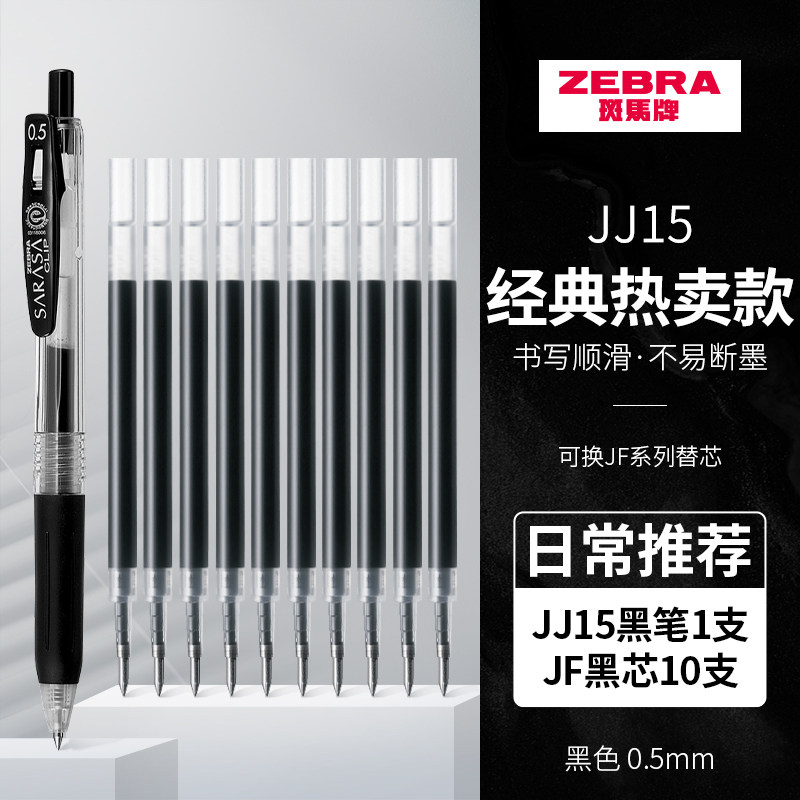 MJF替芯JJ15黑色笔芯套装 0.5 签字笔记圆珠笔 可换芯JF 日本ZEBRA斑马官方旗舰店官网直营JJ77中性笔按动式
