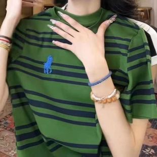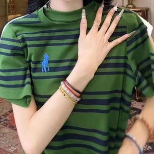 减龄休闲显瘦设计感小众上衣 百搭时尚 高级感条纹刺绣短袖 T恤女装