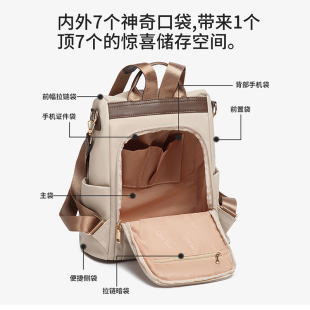 防盗双肩包女2026新款 轻便旅游牛津布女士背包通勤旅行包包潮 时尚