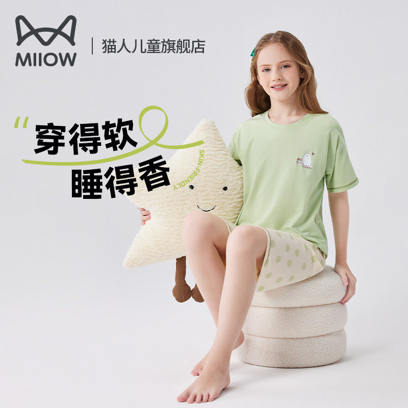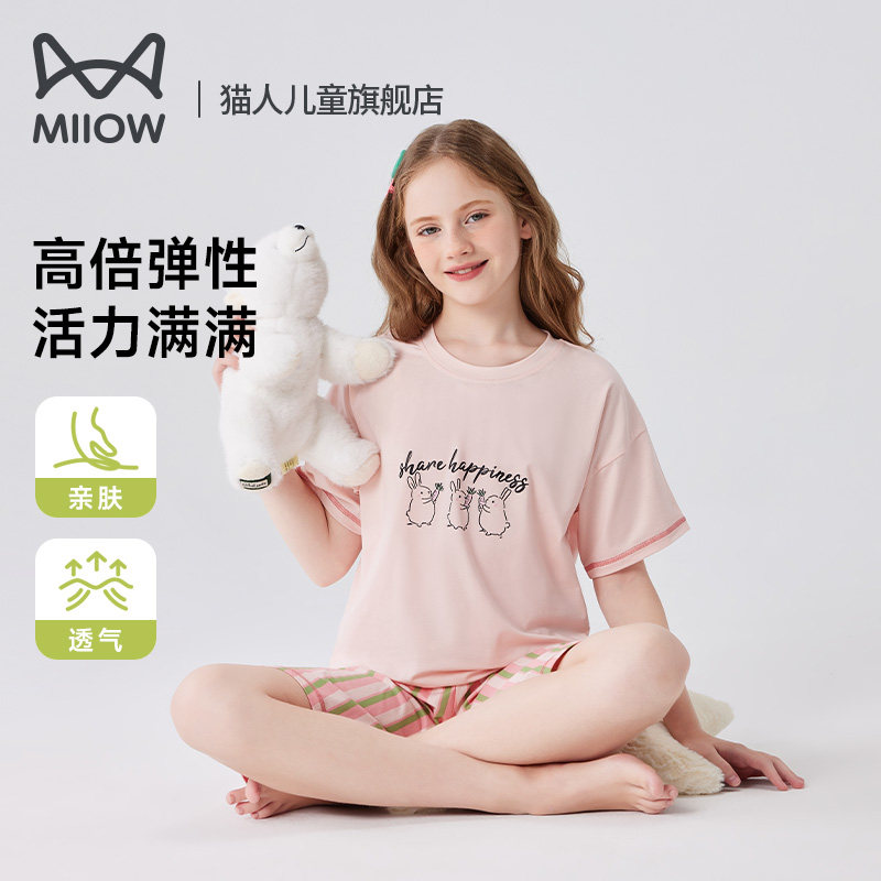 短裤 儿童莫代尔棉睡衣套装 中大童抗菌短袖 薄款 女童凉感家居服夏季