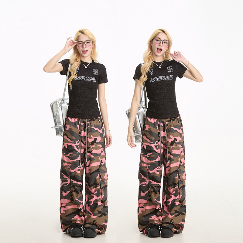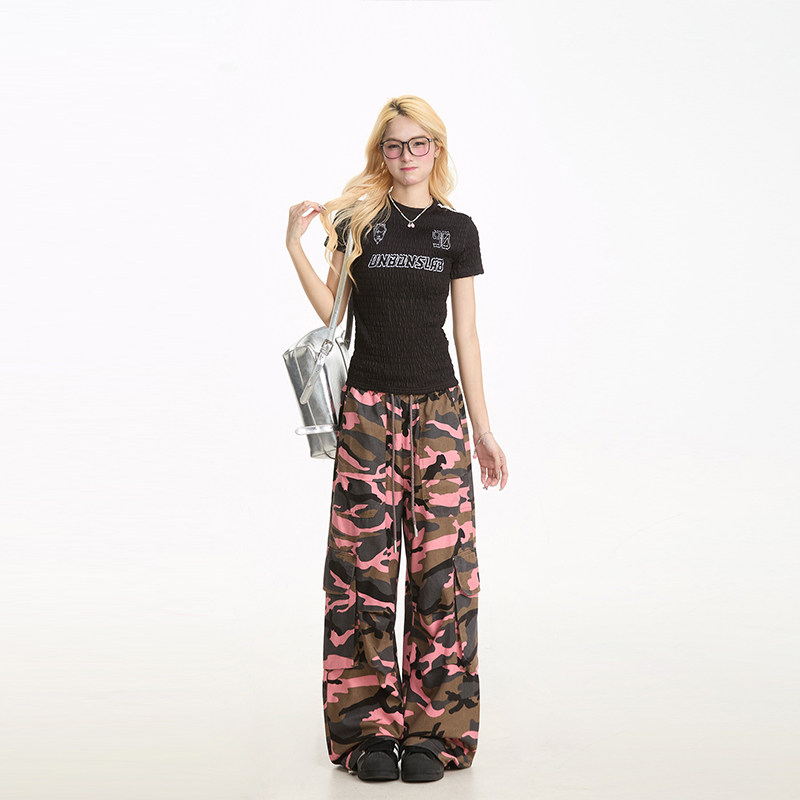 复古街头多口袋显瘦直筒裤 NERESUM裤 美式 裤 子女潮牌户外迷彩工装