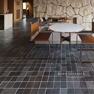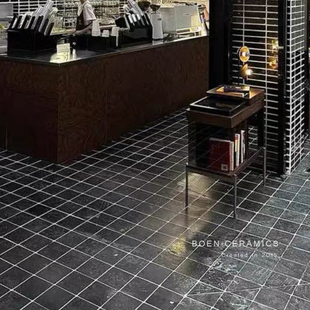 复古黑色莱姆石通体石材庭院马蹄石地砖民宿商业空间背景墙瓷砖