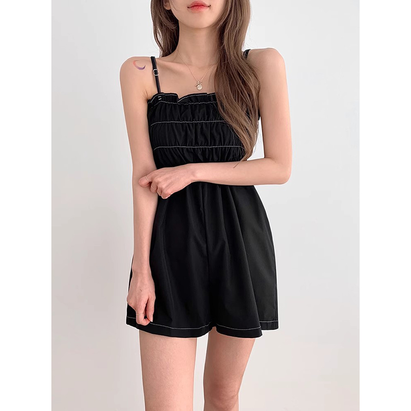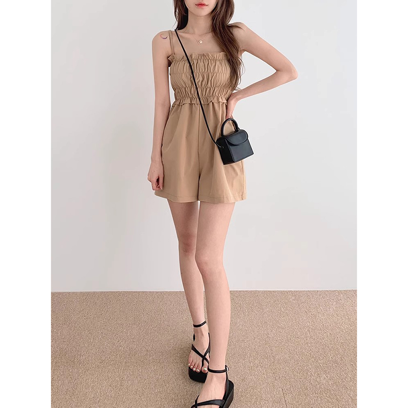 复古纯色休闲短裤 良良家褶皱打揽收腰背带连体裤 法式 新款 子 女夏季