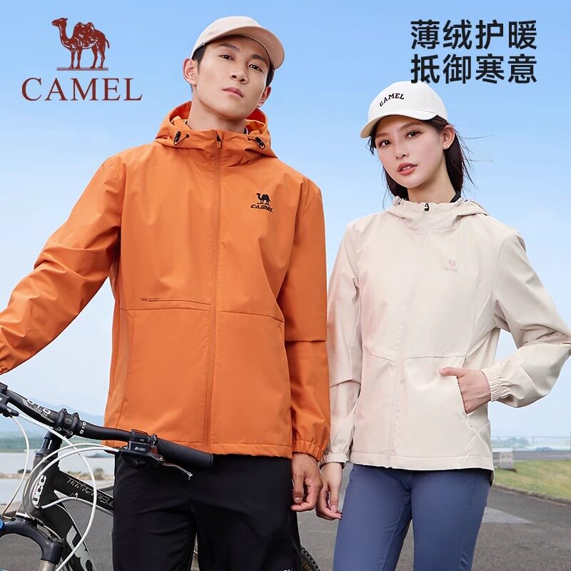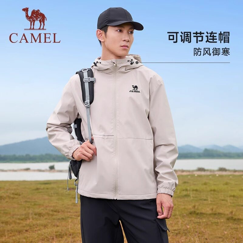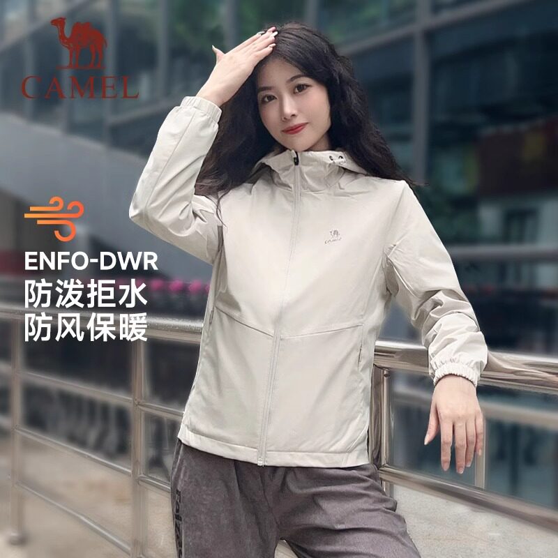 骆驼运动防风夹克外套女春秋情侣连帽防泼水休闲外套运动茄克
