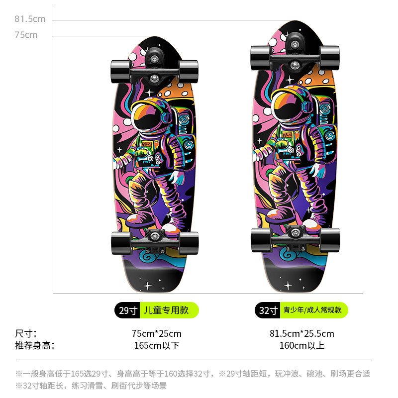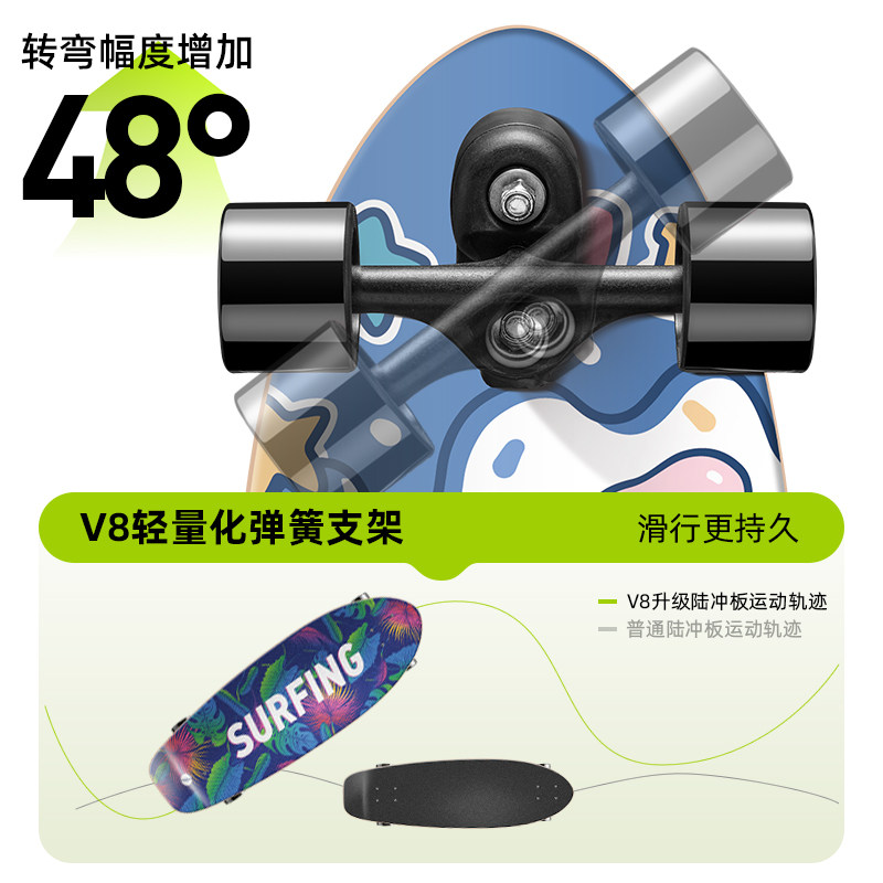 浪丽陆地冲浪板弹簧桥专业免蹬地2025四轮滑板初学者刷街代步路冲