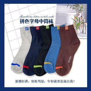 ins潮春夏季 男女士中筒袜黑白纯棉运动袜简约短袜长筒袜无骨防臭