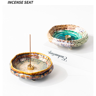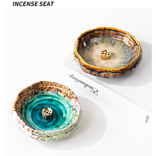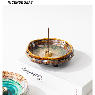 侘寂风复古冰裂纹线香底座香插香托家居香炉高级感熏香摆件送礼物