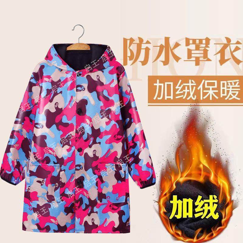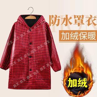 防水加绒罩衣长袖 潮大号 工作服成人外穿大褂家用厨房做饭围裙冬季